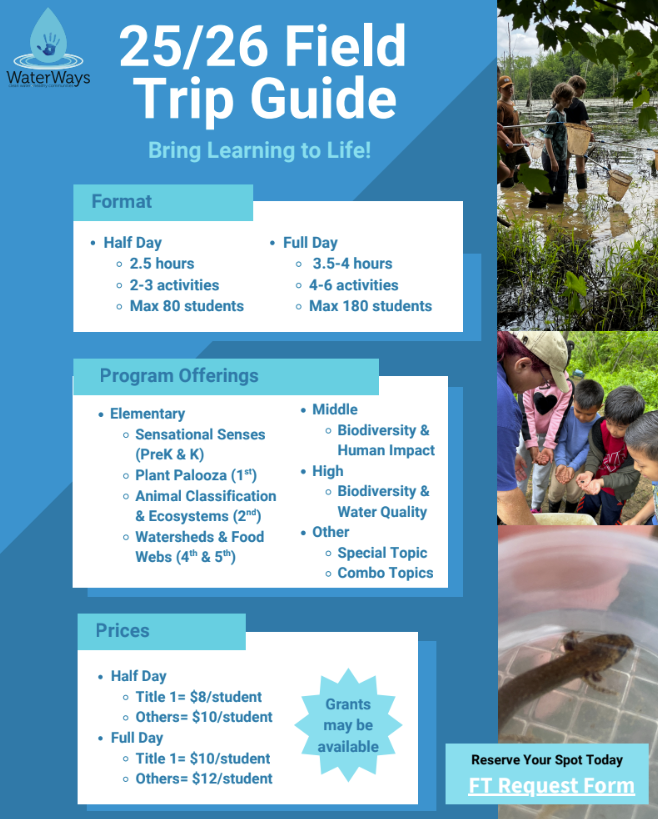 Contact Perianne@mywaterways.org for more information about education programs and opportunities.